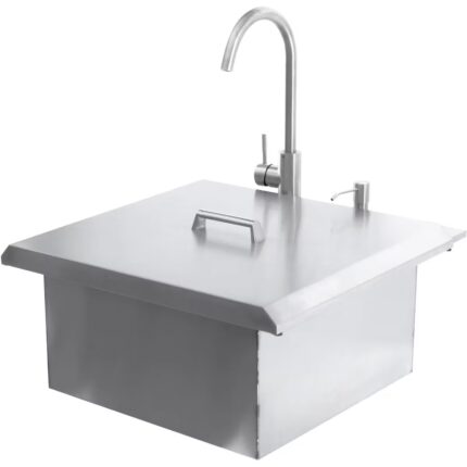 Many homeowners also choose an outdoor sink with cover or sink with lid for added protection and a finished countertop look.