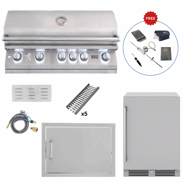Lion Outdoor Kitchen Lux Package – L90000 Grill, Access Door, Beverage Cooler & Ceramic Tray Upgrade w/ (FREE Gourmet Package)