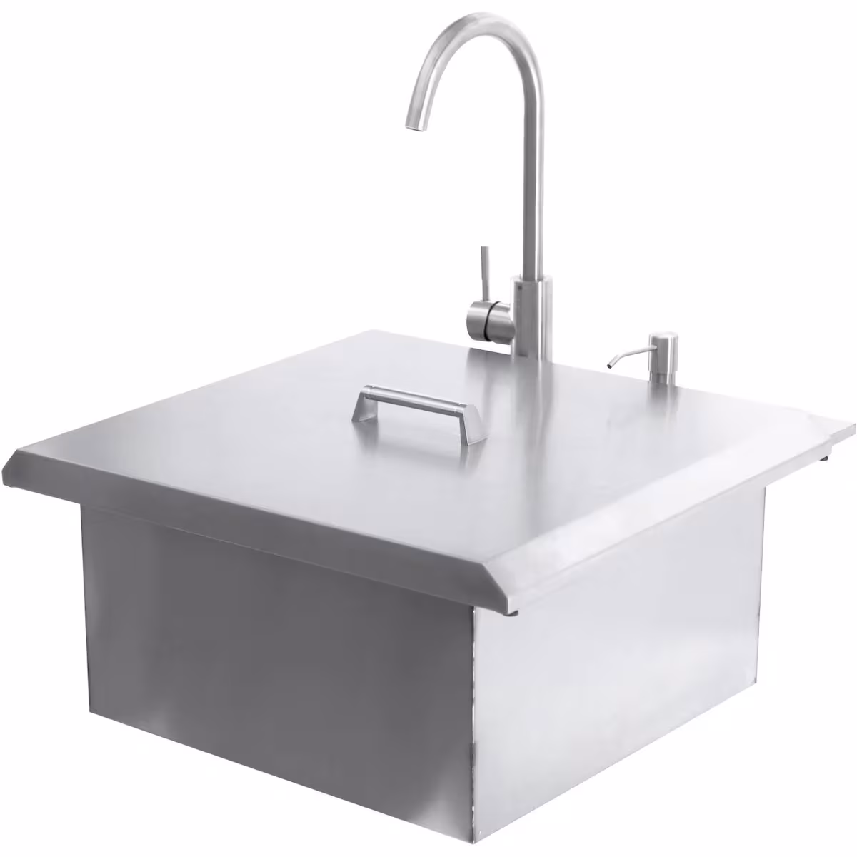 The PCM 21-in Drop-in Sink is the ideal choice for cleaning and food prep in your outdoor kitchen. Made with 18-gauge, 304 stainless steel, this sink has been built with durability in mind and will match other 304 stainless steel components in your kitchen. The sink features a hot/cold faucet, soap dispenser and a 10-in deep basin for washing your hands, tools or cookware. The included cutting board can be set on top of the sink while leaving a portion of the basin open to catch drippings and trimmings. The large drain is sized to fit most garbage disposals and features a catch basket to keep food and debris from damaging your plumbing. When not in use, the included lid prevents debris from collecting in the basin. Swappable traditional and contemporary-style handles are included for the lid. PCM outdoor kitchen components are designed without a logo, so you can pair them with any brand of grill or outdoor kitchen appliance.