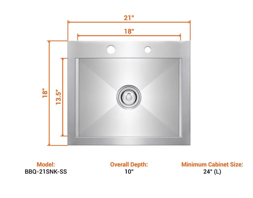 PCM 21-in Outdoor Rated Stainless Steel Drop-In Sink w/ Hot/Cold Faucet – BBQ-21SNK-SS
