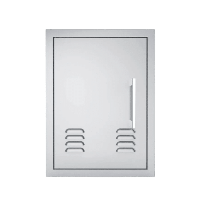 The Sunstone Signature Series 14×20 Left Swing Vertical Vented Single Door – BA-VDVL1420 combines exceptional craftsmanship, modern design, and superior functionality to elevate your outdoor kitchen. Engineered with built-in vents, this door prioritizes safety by ensuring proper airflow, minimizing the risk of gas buildup within enclosed spaces. Whether you’re using it to access a propane tank, a trash bin, or general storage, this door is a must-have for any well-designed outdoor cooking area.